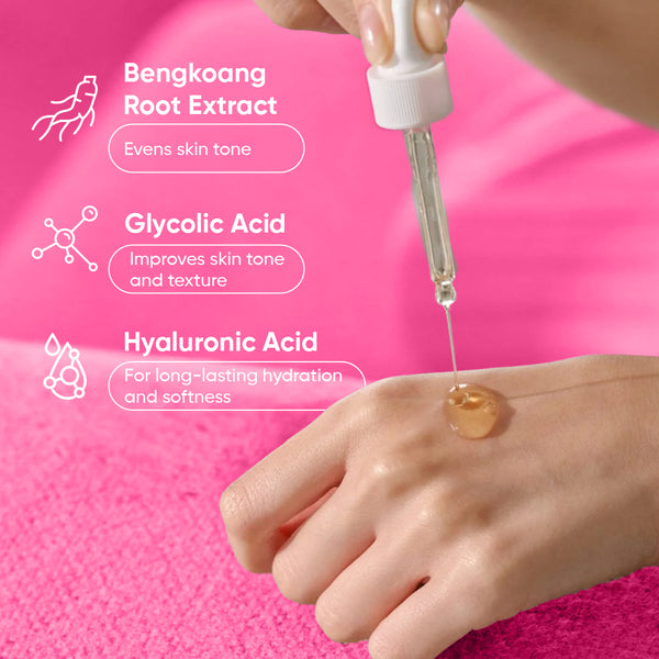 Meet the glow serum that shows up fast. Powered by 2% Glycolic Acid, it brightens from Day 1 and smooths your texture by Day 3, without the usual burn, sting, or downtime. It's brightening that doesn’t ask you to wait months, because no one’s got time for that.